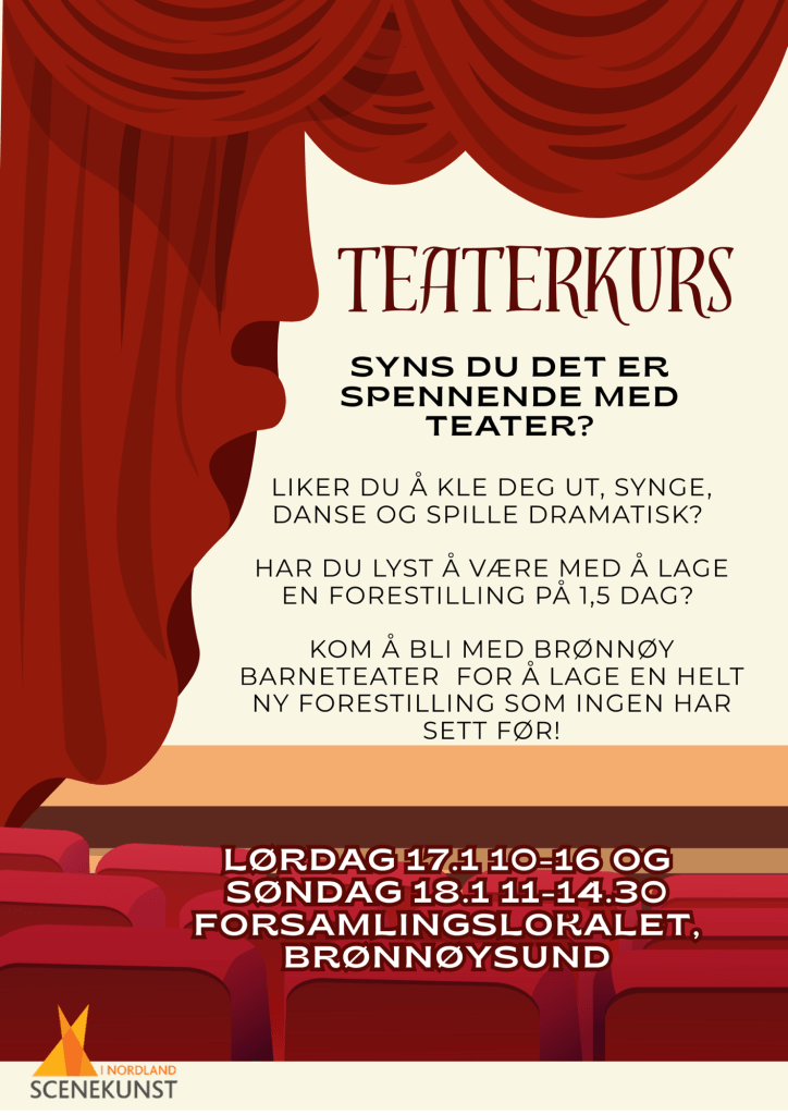 Kurset er åpent for alle unge i alderen 5. 6. 7. klasse i Brønnøy kommune 🎭 mer info kommer 😊